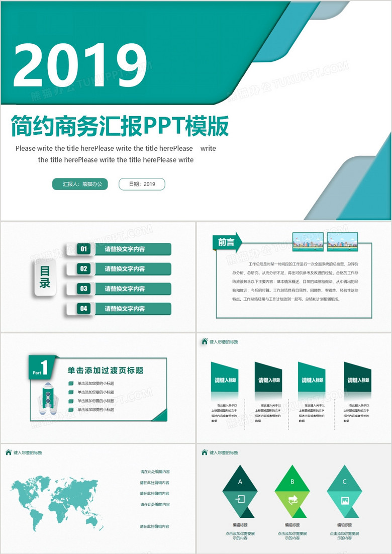 本作品内容为2019简约商务汇报工作总结PPT模板, 格式为 pptx, 大小24 MB, 页数为25,比例16:9,请使用软件PowerPoint打开, 作品中文字及图均可以修改和编辑,图片更改请在作品中右键图片并更换,文字修改请直接点击文字进行修改,也可以新增和删除作品中的内容